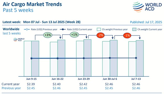 In the second week of July 2025, the global air cargo market continued to demonstrate stable pricing trends, despite a slight decline in cargo volumes for the second consecutive week. The latest report from WorldACD Market Data highlights several notable shifts in volume, freight rates, and regional recovery trends—particularly across key regions such as Asia-Pacific, […]